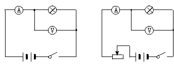 请一位同学将自己设计的电路图画在黑板上.教师巡视,这时可能会发现,不论同学们灯泡、电表摆放的位置如何,大致会出现两种情况,一种只画出电流表、电压表、灯泡,另一种较完整,接进了滑动变阻器.