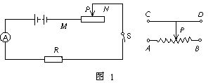 6. 如图1所示的电路,为了改变电路中的电流强度,可将M,N接到滑动变阻器的______、______两接线柱上。闭合开关后,当P向左滑动时,电路中的电流将______。当M,N接在滑动变阻器的A、D两接线柱上,P向右滑动时,电路中的电流将______;当P滑到______端时,电路中的电流最小。
