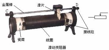 注意,当滑片滑动时,改变的是线圈中A-P部分的长度,来达到改变接入电路中电阻的目的。