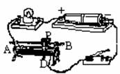剧场里的照明灯总是忽明忽暗的,它是怎样实现的呢?其实这并不难做到,只要在电路中加装一个滑动变阻器的装置就行了。下图所示的就是滑动变阻器。图右边的符号就是滑动变阻器在电路图中的符号。图下边的是它的结构示意图。