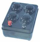 一般情况下它只有两个接线柱,只要将变阻箱串联在电路中就行了,电流从红色接线柱流入,从黑色接线柱流出。它有个数不等的旋盘,每个旋盘上都标有0至9的10个数字,旋盘的下方标有标记及×1000、×100、×10、×1等等。如果有×1000的旋盘处标记对着的数字是5,此时该旋盘接入电路中的电阻为5000欧姆。各旋纽对应的指示点的示数乘以面板上标记的倍数,它们之和就是电阻箱接入电路的阻值。如下图所示的两个电阻箱接入电路中的电阻分别是1527欧和8625欧。这种变阻箱可以提供的最大电阻是9999欧,最小电阻是0欧,一共10000个阻值,也就是104个阻值。所以有一个小规律,变阻箱上有n个旋盘,可以提供的阻值就有10n个。这种变阻箱的优点就是可以表示出接入电路中的电阻,但是它改变电阻是不连续的。