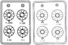 变阻器不能表示出连入电路的电阻值,但它可以连续改变接入电路中的电阻。为了能够表示出接入电路中的电阻值,人们制造出了变阻箱。下图就是旋盘式变阻箱。