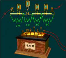 如下图所示的变阻箱叫做插销式变阻箱。当四个插销全部拿出相应的插槽时,电流就要分别流过每一个电阻丝,这时接入电路中的总电阻是10欧。如果将1号插销插入插槽中,这时1欧的电阻丝将被短路。所以这种变阻箱读数的方法是将没插入插槽中的插销所对应的阻值相加就行了。