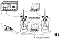 5. 在探究电流做功与哪些因素有关的实验中(如图3所示),二个瓶子中的电阻丝是__________(选填“串联”或“并联”)电路,这样做可以保持二瓶的__________一致。这是用来研究电流所做的功跟__________(选填“电流”或“电压”)的关系,实验结果表明,相同时间内电流大的那瓶温度升高的多,说明电流做功跟__________有关。