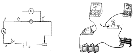 (3)为了测出小灯泡的额定功率,应调节的元件是____,使电压表示数为_____V。如果此时的电流表的示数如图所示,则该灯泡的额定功率为____W.