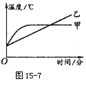 5.如图15-7所示是一个同学用相同的酒精灯给质量相等的甲、乙两种物质加热时,根据测量结果描绘的温度-时间图象.由图可知,甲物质的比热_________(填“>”“=”或“<”)乙物质的比热,其中_________物质是晶体.(题型三)