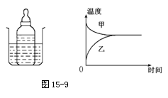 如图15-9所示把凉牛奶放在热水中加热,经过一段较长时间,它们的温度随时间变化的图像如图所示,下列说法中正确的是 ( )(题型三)