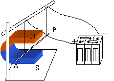 如图所示,悬挂在金属丝上的金属棒AB处在