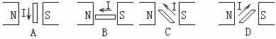 7.如图所示的是通电导体放置在磁场中的情况,其中不受磁场作用力的是[ ]