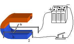 如图所示是检验磁场对通电导体作用力的实验装置,当导线AB中有某方向电流通时,它受到的磁场力方向向左。