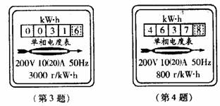 3.(辽宁中考题) 有一只“220V 100W”的灯泡,使其工作2 h,灯泡消耗的电能是______J。如果把它单独接在如图所示的电能表上,电能表转盘转过______ 转。