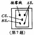 7.如图所示是一个家庭电路常用的五孔插座,其中A孔应接______线,B孔应 接______线,C孔应接________线。