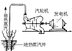 到80年代末,全世界运行的地热电站,其发电功率每年已超过500万千瓦,1995年达到680万千瓦,年增16%.中国著名的地热电站,是西藏的羊八井地热电站,装机容量2.5万千瓦.地热发电是利用地下热水和蒸汽为动力源的一种新型发电技术.其基本原理与火力发电类似,也是根据能量转换原理(图16-2).首先把地热能转换为机械能,再把机械能转换为电能.
