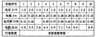 ⑴将第三次实验的电功率值和第九次实验的电阻值填人表中的空格内。