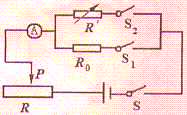 利用如图15-3-9所示的电路,测定一个电热器R0(R0的阻值未知,额定电压已知为U0)的额定功率P0,图中R为滑动变阻器,R′为电阻箱,图中所有仪器都能保证实验正常进行。开始实验前,三个开关S、S1、 S2均处于断开状态。