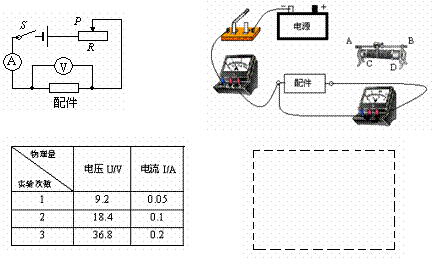 (2)小明在正确连接完电路后,将测得的实验数据记录在下列表格中,根据实验数据能够知道配件的性能参数是 (只要求写出一个参数及其数值).