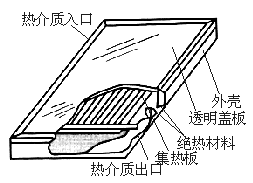 简单的平板型集热器,由一块金属板(铜、铝、钢板等)构成.如图16-10所示.朝太阳的一面处理成吸收系数大的黑色表面,以充分吸收太阳的辐射能.当水流过金属板背面时,金属板吸收的太阳能就把水加热.为了充分把收集的太阳热量传给介质.金属板朝太阳的一面,装上一层或多层玻璃或塑料板,背面和四周加保温设备,以减少热量损失,保持一定的加热温度.平板型集热器可用于加热水、咸水淡化、房屋采暖、干燥以及制冰等.除了平板型集热器外,还有聚光式集热器.聚光式集热器常用透镜、抛物面反射镜或多块平面反射聚光镜.作为获得能量密度较高的收集器,可以获得上千度的高温.