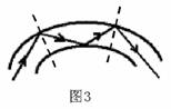 师:出示水槽实验器材,如图2所示:槽底有一激光灯,提示学生注意观察光线射入角 度变化时,光路情况。 图2 师:让光线与水面的角度慢慢变小(即入射角逐渐增大)时,你看到了什么? 师:很好,光从水下射出水上时,满足折射规律,当入射角大到一定程度光在原介质内按反射规律传播。 师:大家用玩具激光电筒点亮后,你会看到什么地方发光? 师:你看到整根玻璃丝发亮吗? 师:这现象说明什么?与刚才老师水槽演示初级的原理有什么关系? 师:回答很好。 请看图3中光路情况。 |