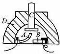 如图所示,是一种门铃按钮开关构造的截面图:D为外壳,C为按钮,A、B为金属片,并各有接线柱与电路连接。请指出A、B、C、D部件的材料哪些是导体,哪些绝缘体?其中制作A的材料还应有什么要求?