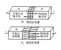 PN结电场方向相同,如上图乙所示。两个电场迭加的结果,加强了阻止空穴