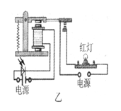 思路与技巧: 根据光电二极管的特性,光照射光电二极管时,光电二极管导通,被控制的灯泡发光,此时的光电二极管相当于一个开关.其原理图如图甲.但光电二极管的工作电流较小,直接将光电二极管与灯泡串联,容易烧坏光电二极管;因此,电路设计应运用电磁继电器以小电流控制大电流.其设计图如图乙