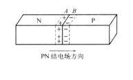 ①半导体二极管PN结的形成N型半导体的多数载流子是电子,P型半导体的多数载流子是空穴(靠空穴导电,空穴的正向移动等效于正电荷的移动)。把N型和P型半导体结合在一起后,N型半导体的多数载流子电子将向P型半导体一边扩散,P型半导体的空穴将向N型半导体一边扩散。其结果是使N型和P型半导体的交界面两侧形成带电薄层A和B,且A带正电,B带负电。产生一个电场,如右图所示。