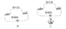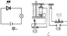 根据光电二极管的特性,光照射光电二极管时,光电二极管导通,被控制的灯泡发光,此时的光电二极管相当于一个开关.其原理图如图甲.但光电二极管的工作电流较小,直接将光电二极管与灯泡串联,容易烧坏光电二极管;因此,电路设计应运用电磁继电器以小电流控制大电流.其设计图如图乙