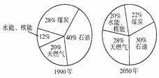 3.右图所示的是1990年和2050年世界各类能源在消费总量中所占的比例。根据你所学的有关能源的知识和图中的信息判断下列叙述,正确的是 ( )