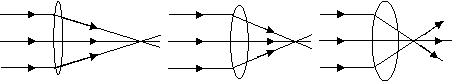 31、(2分)小华在学习了《透镜》后,想到了一个问题:如果让平行光通过厚度不同的凸透镜,它们对光线的会聚能力会有什么不同呢?于是他在实验室用一束平行光分别经过凸透镜A、B、C,并得到如图所示的光路图。