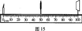 33.(3分)小刚同学用焦距为10cm的凸透镜做实验,实验装置示意图如图15所示,在实验过程中保持凸透镜的位置不变,请你根据所学知识完成下列填空。