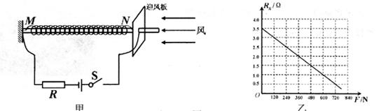 (1)若在电路中接人一电压表,使电压表示数随风力的增大而增大,请在图甲中适当位置画出电压表;
