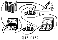 30.按图13(16)所示的实物连接图,在实物图右方虚线框内画出相应的电路图。