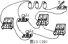 32.图13(29)所示是某同学测量灯泡两端的电流和电压时出现的一些情况如下: