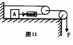 如图11所示,在拉力F的作用下,重80N的物块A正以0.2m/s的速度在水平面上做匀速直线运动,此时弹簧测力计的示数为20N,该装置的机械效率为80%,则:拉力F的大小为