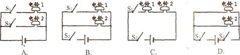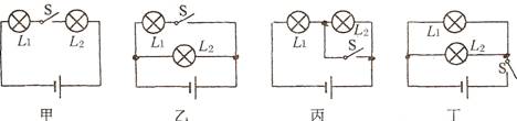 10.如图所示的四个电路中,开关S能使L1、L2两盏灯同时发光或熄灭的是 ( )