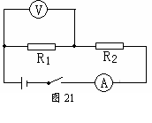 29.如图21所示,R1、R2串联后接到6V的电源上,已知R1=10Ω.合上开关后,