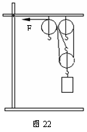 在建筑工地上常用塔吊搬运建筑材料,塔吊可以简化成如图22所示的装置,此装置在1min内能将500kg的建筑材料匀速提高20m,所用拉力F的大小为2000