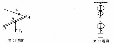 22.杠杆AB可绕O点转动,F1、F2是作用在杠杆上的两个力.在图中分别画出F1、F2的力臂Ll、L2.