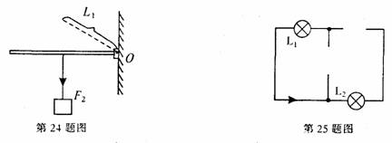 24.如图,杠杆在力F1、F2作用下处于平衡状态,L1为F1的力臂,请在图中作出力F1和L2.