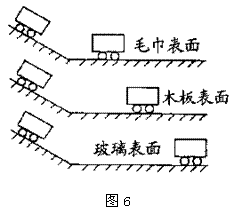 如图6为探究摩擦力对物体运动的影响的实验。实验时必须使小车从斜面上同一高度滑下,这是为了使小车在平面上开始运动时的