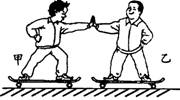 质量相等的甲、乙两同学站在滑板上,在旱冰场上相对而立,如果甲用60N的力推乙,如图1所示。以下分析正确的是( )