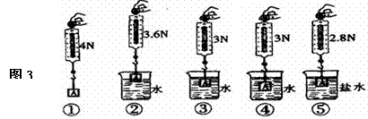 12、在探究“影响浮力大小的因素”中,做了图3中的一系列实验,通过分析弹簧测力计的示数,完成下列问题。