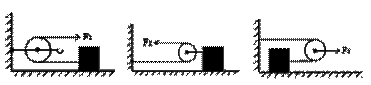 2、如图所示的三个滑轮分别拉同一物体沿同一水平地面做匀速直线运动, 所用的拉力分别为F1, F2, F3, 那么, 下列关系式中正确的是: ( )