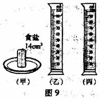 19、将图9(甲)中的块状食盐和图9(乙)中的水混合,待完全溶解后如9 9(丙 )所示.