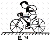 22如图24所示,质量为48kg的小华同学骑着一辆自行车在平直公路上匀速运动500m,所用时间为100s。假设自行车在行驶过程中受到的阻力为其体重的