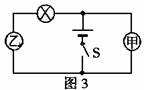 如图3所示,闭合开关S,电灯正常发光,甲、乙两表分别为( )