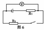 在探究串联电路电压的实验中,张高林同学连接完电路,在开关断开时,发现电压表示数为9V,合上开关后,发现电压表示数变为3V。如图6所示,则当S闭合后对这一电路分析正确的是 ( )