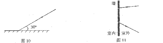 24.室内一盏电灯通过木板隔墙上的两个小洞,透出两条细直光束,如图11所示.在图中根据这