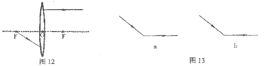 26.一束光线射向某个光学元件后的传播情况如图13所示.在图(a)、(b)中的恰当位置分别画
