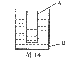(2)课后小明又进行了以下探究:如图14所示,在容器A内装水,在容器B内装盐水,一段时间后发现容器A内有冰出现,由此可以判断原来容器B内盐水的温度 ▲ O℃(选填“高于”、“等于”或“低于”)